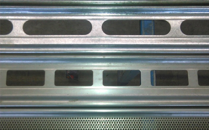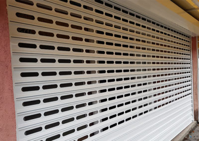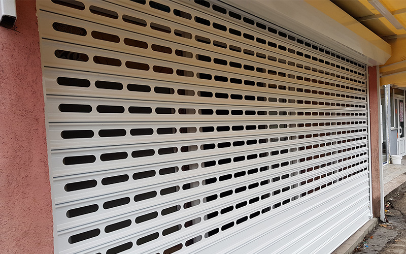 Perforirana rolo vrata nude kombinaciju čvrstoće čeličnih rolo vrata i otvora duž lamele koji omogućavaju prodor svetlosti i vazduha u prostoriju ali i uvid u unutrašnjost zaštićenog prostora.